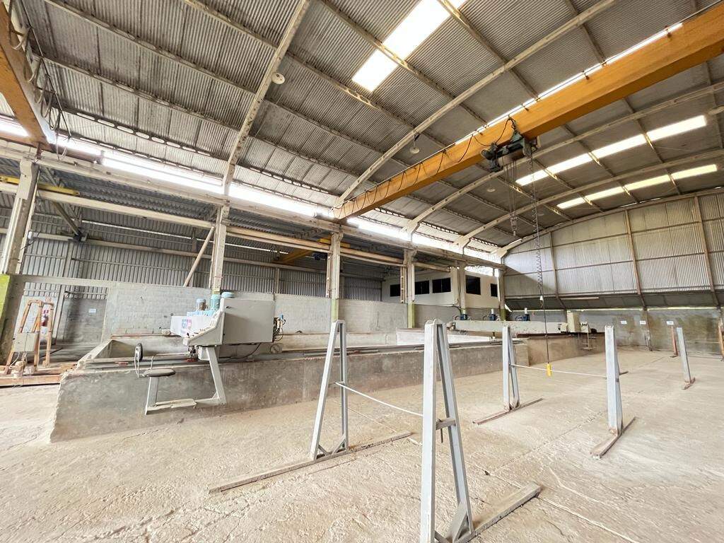 Ele é constituído de linha de resinagem (mesas + forno), doca, politriz semiautomática, três cabeças, duas pontes, ventosas e poços de decantação.