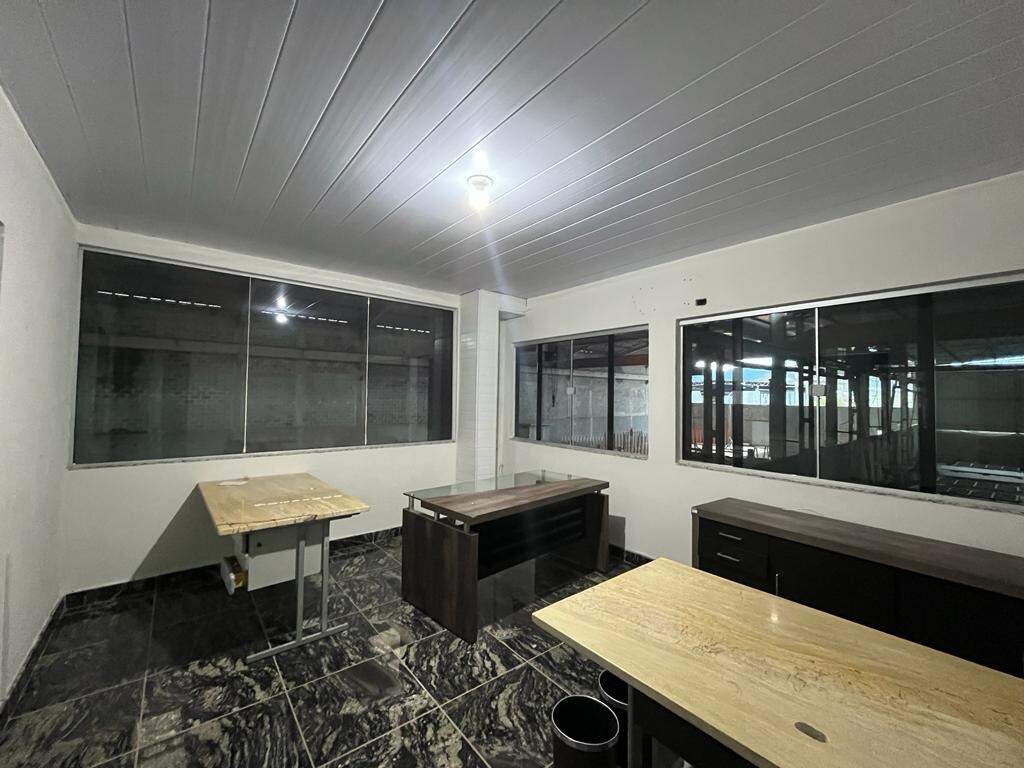 O galpão possui um escritório com 2 pavimentos, sendo o pavimento térreo constituído por hall de entrada, refeitório e banheiro, e o segundo pavimento constituído por três salas, uma cozinha e um banheiro.